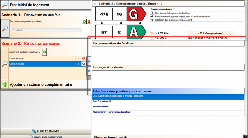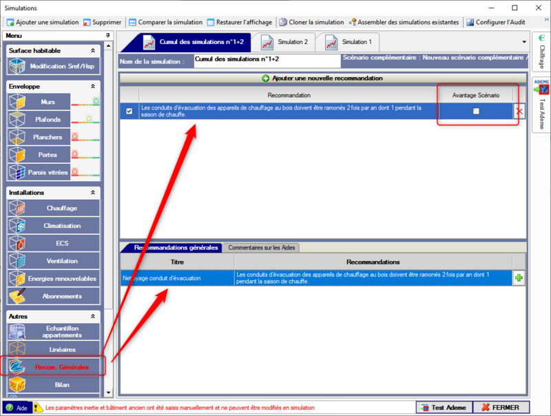 Cela arrive quand vous avez une recommandation cochée sur un élément désactivé. Le plus souvent c’est sur la chaudière en ECS. Il y a une recommandation alors d’une nouvelle pompe à chaleur (ou ballon thermodynamique) la remplace