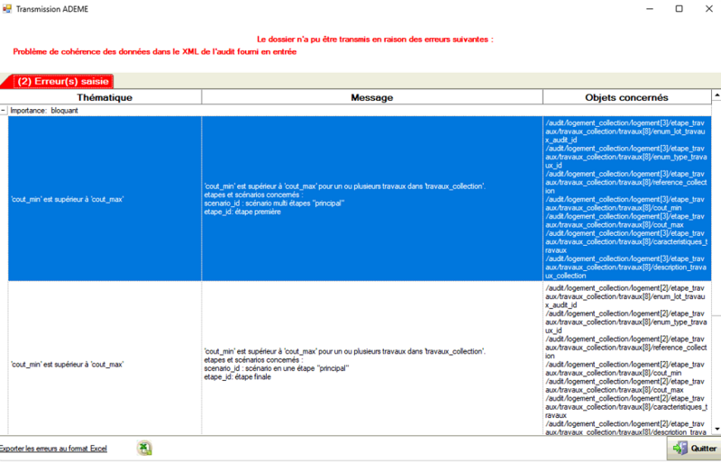 4.3.6 J’ai le message suivant lors de l’envoi à l’ademe : Cout_min est supérieur à cout_max pour un ou plusieurs travaux ?