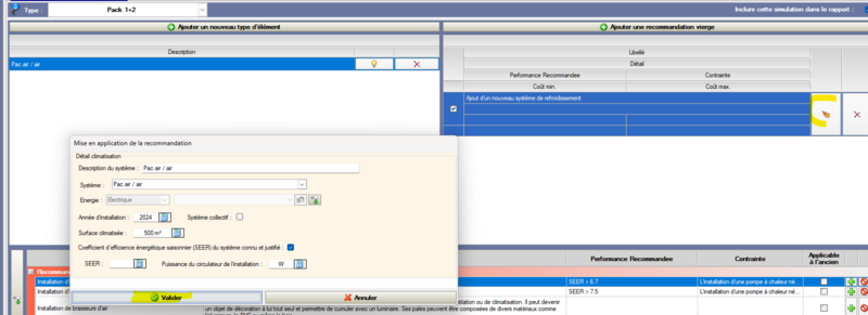 le terme FR désigne la partie climatisation. il faut retourner dans les recommandations où vous avez ajouté la climatisation depuis le + vert de la PAC Air/ air. Dans la partie climatisation, cliquez sur l'éclair pour la revalider. Vous pouvez envoyer à nouveau